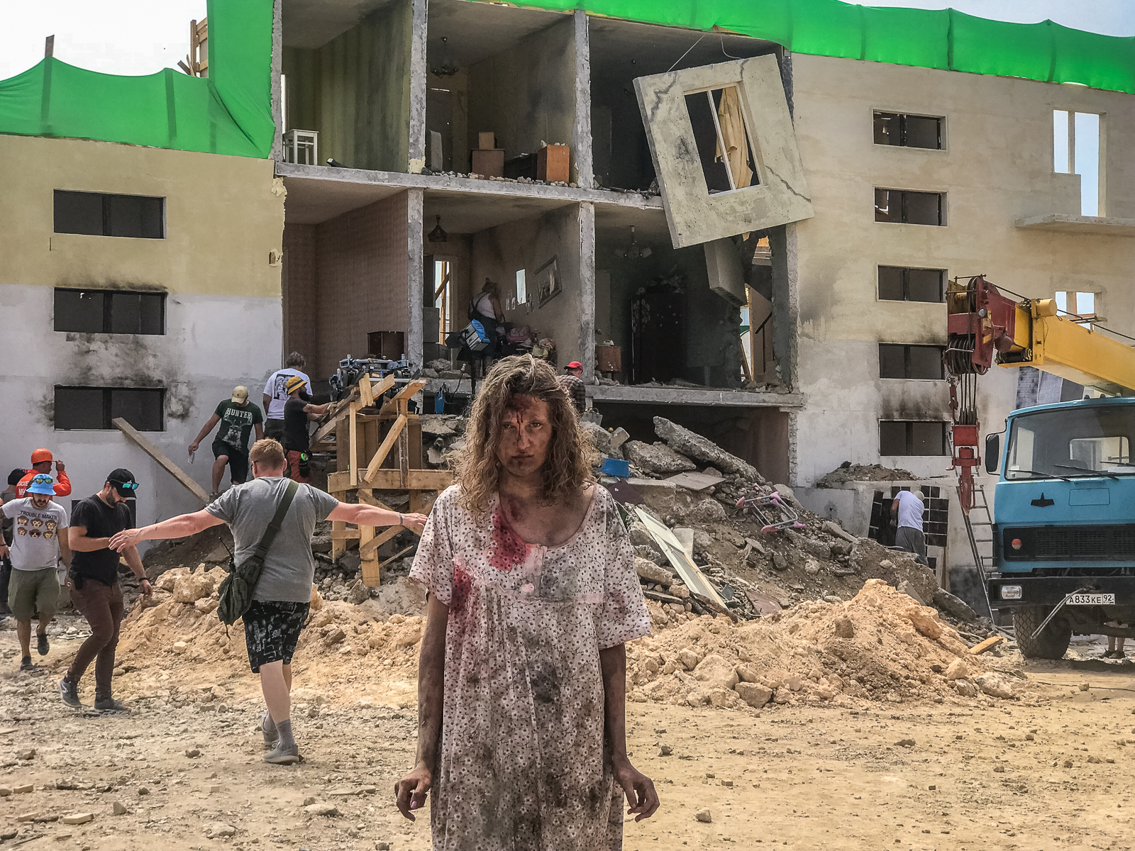 Недостроенная больница стала основной локацией во время съемок жуткого эпизода – взрыв дома… Вокруг спасатели, раненые, женщины в домашней одежде, которая превратилась после взрыва в тряпье, стоны, крики. Атмосфера нагоняет ужас…