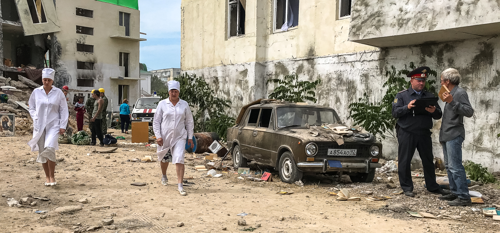 Недостроенная больница стала основной локацией во время съемок жуткого эпизода – взрыв дома… Вокруг спасатели, раненые, женщины в домашней одежде, которая превратилась после взрыва в тряпье, стоны, крики. Атмосфера нагоняет ужас…