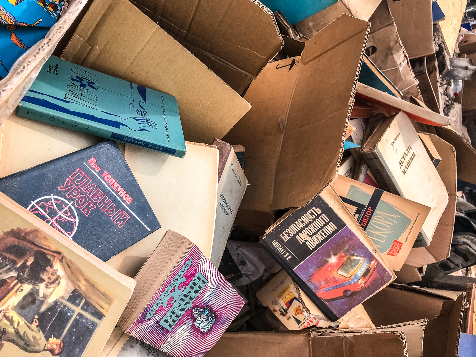 На съемочной площадке отказалось множество ящиков интересного реквизита выпуска советских издательств.