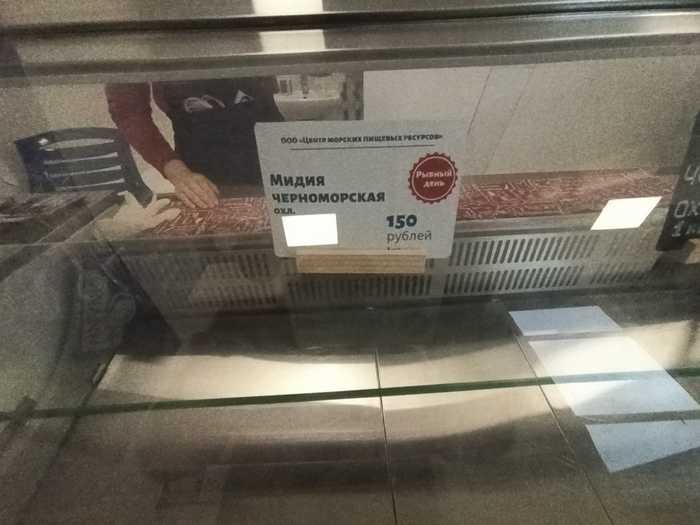 А вот в магазине «Дом мидии», который находится на Правды, 28, и где анонсировались среди прочего мидии по 150 рублей, оказались с утра пустые витрины. А представленный акционный товар оказался черноморскими мидиями в створках. Еще и с ограничением не более двух килограмм в одни руки.