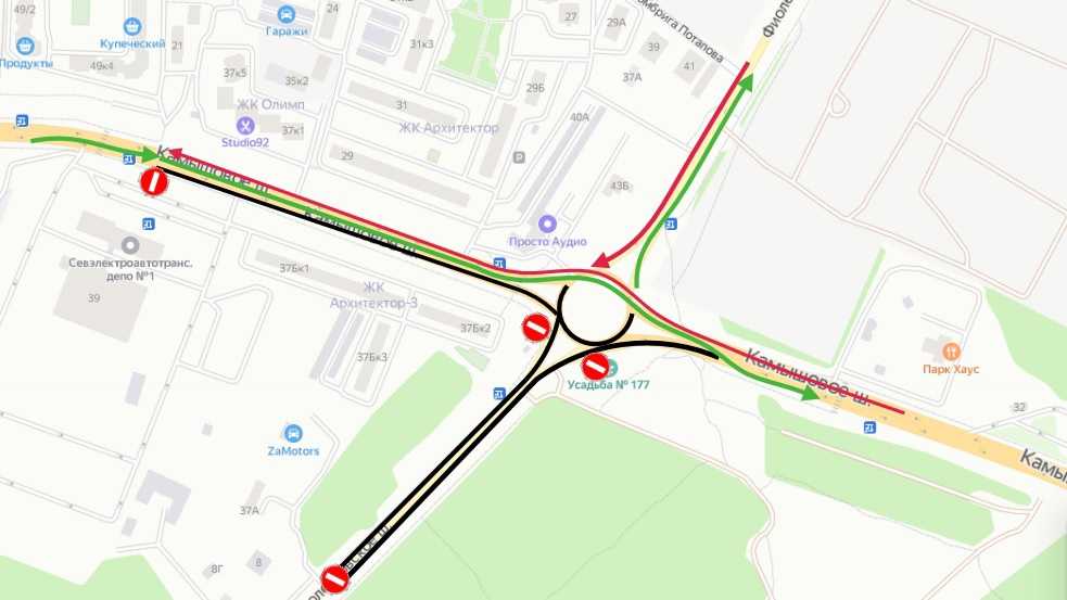 Выезд на Камышовое шоссе с Фиолентовского шоссе и в обратном направлении будет закрыт.
