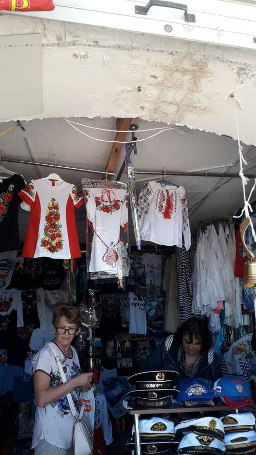 При этом, отметим, что в Севастополе в сувенирных ларьках на Приморском бульваре можно спокойно найти в продаже настоящие украинские вышиванки. При этом они продаются рядом с тельняшками, фуражками Черноморского флота, шапками-ушанками, портретами Путинами и Знаменами Великой Победы. Пользователи часто делятся этими фото в соцсетях.