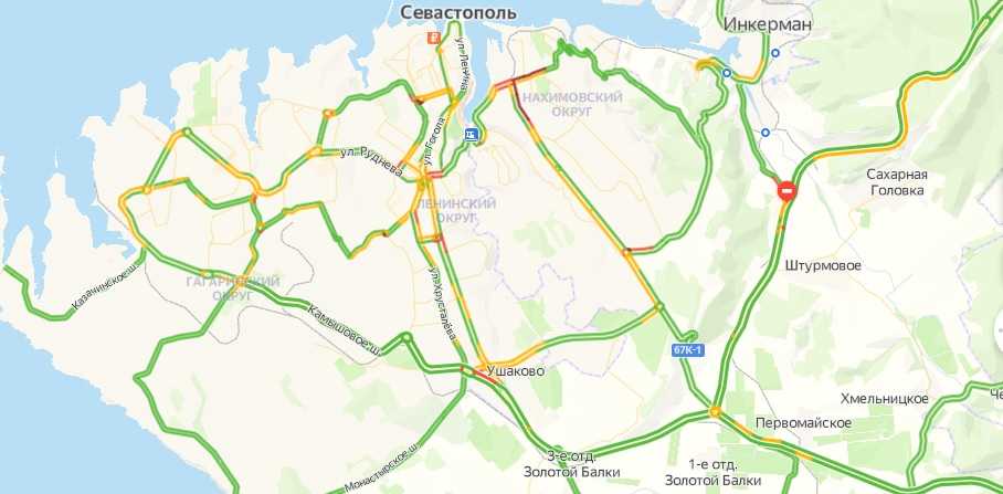 По состоянию на 8.40 нет традиционной пробки на проспекте Октябрьской революции, небольшая пробка на улице Руднева и Олега Кошевого и Льва Толстого.