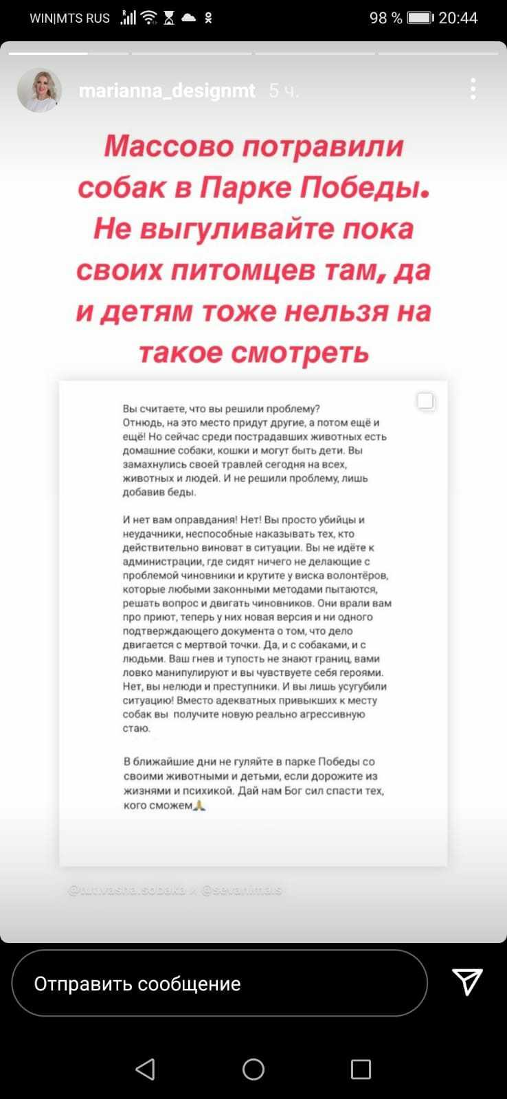 В соцсетях начали предупреждать не выгуливать животных в парке