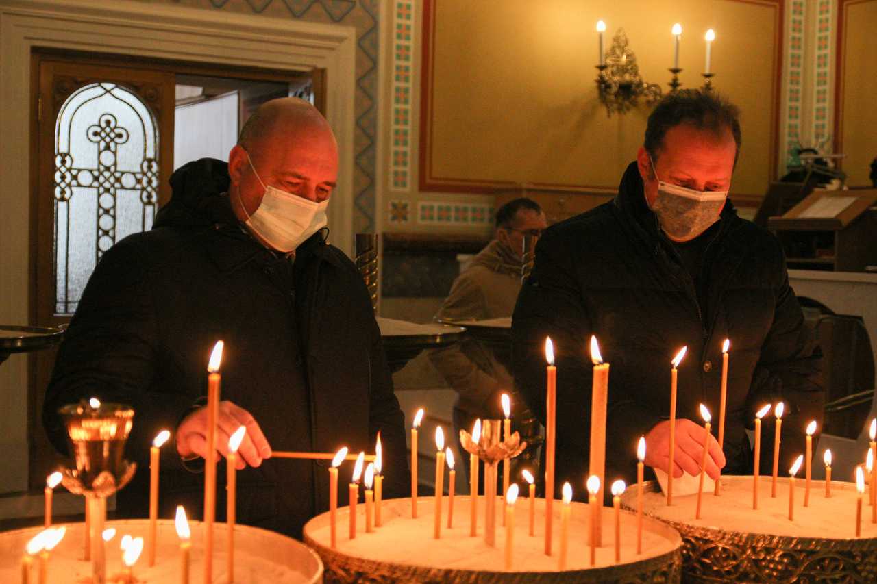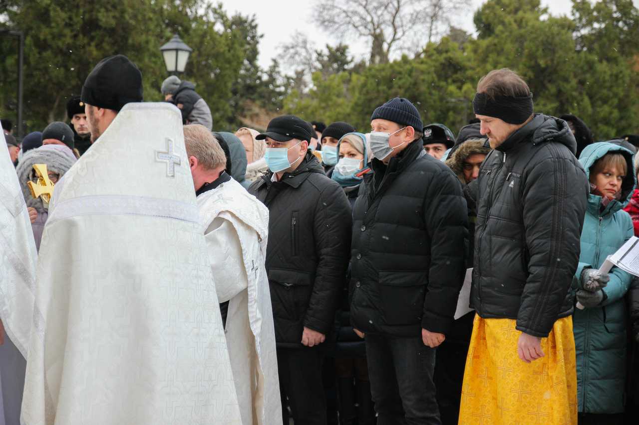 На службу в главном севастопольском соборе собрались тысячи верующих, в числе которых председатель законодательного собрания Севастополя Владимир Немцев и вице-спикер Илья Журавлев.