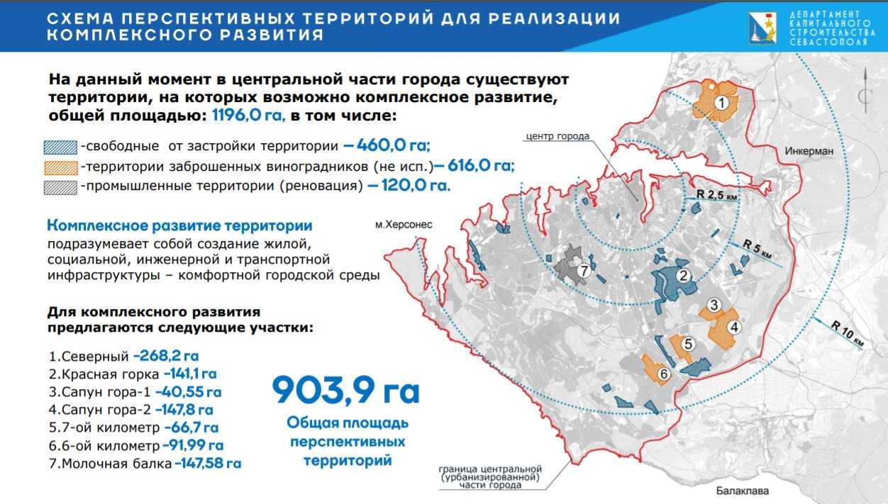 Часть новых районов появятся на землях бывших совхозов, например имени Софьи Перовской или «Севастопольский», заброшенных виноградниках, землях минобороны и граничат с ОКН. Здесь потребуются новые инженерные сети, транспортные развязки, строительство социальной инфраструктуры.