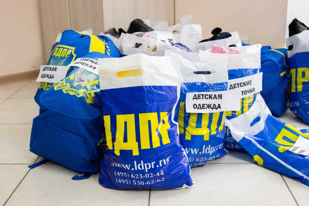 Депутат ЛДПР Андрей Куринов, координатор Ленинского отделения ЛДПР Виктория Этенко, помощник координатора по работе с молодежью Борис Этенко, координатор первичного отделения «Сафронова» Екатерина Литвиненко передали нуждающимся несколько десятков пакетов с обувью, одеждой, игрушками и прочими вещами.