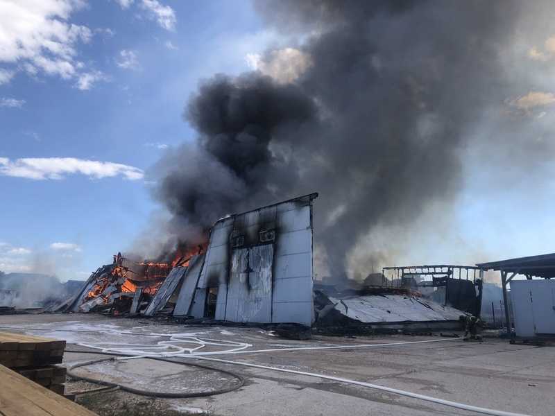 «На тушение подано 5 ручных стволов. По первичной информации, площадь пожара на складе составляет 600 квадратных метров и травы 600 квадратных метров», — сообщили в пресс-службе.