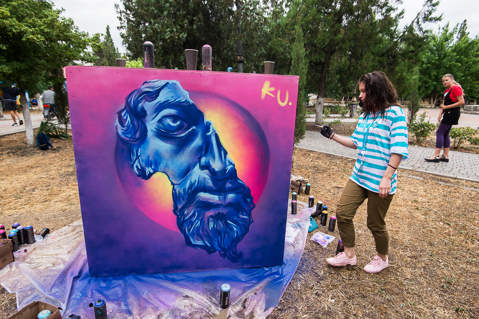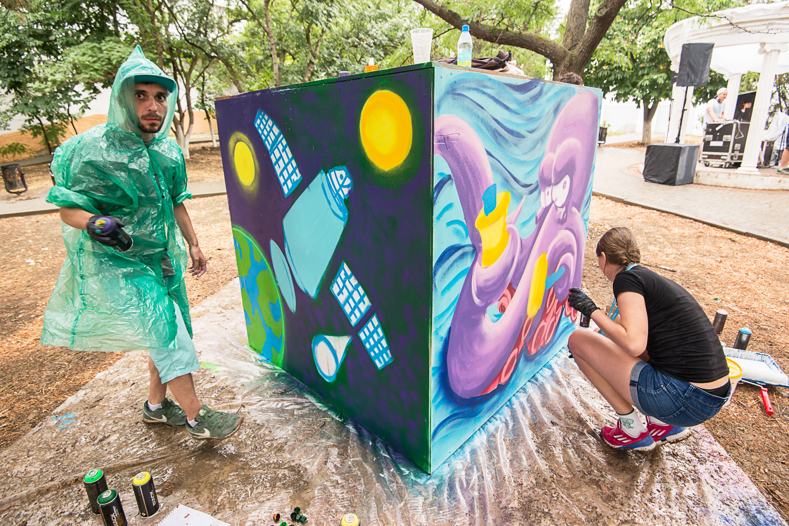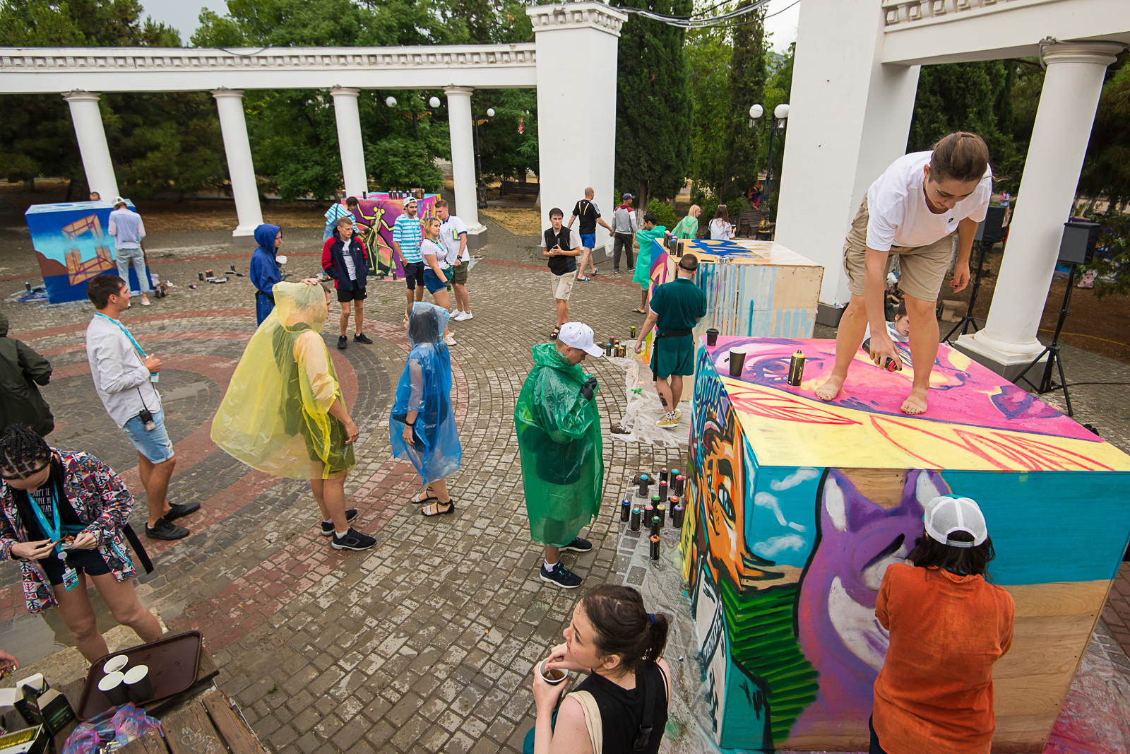Кроме того, участники школы «Стрит-арт. 6 кейсов» организовали фестиваль уличного искусства в Судаке и создали граффити на 8 специальных кубах.