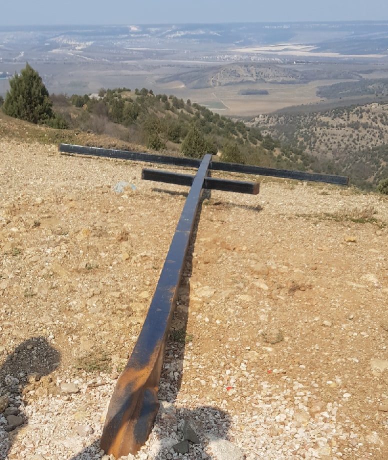 В Балаклаве на горе, недалеко от «бочки смерти», неизвестные погнули и повалили металлический крест. Он был установлен, как отмечают севастопольцы, в память о советских солдатах, отдавших жизнь за Родину.
