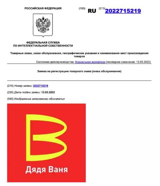 В России компания, занимающаяся выпуском консервов «Русское поле – Логистик», направила в Роспатент заявку на регистрацию товарного знака «Дядя Ваня», включающего в себя изображение буквы «В», переделанной из бренда сети ресторанов McDonald’s, пишет РИА Новости.