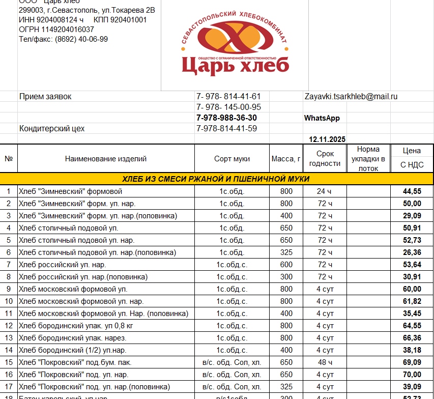 С 12 ноября предприятие «Царь хлеб» поднимает закупочную цену на хлеб и кондитерские изделия. Крупнейший севастопольский поставщик хлебобулочных изделий уведомил своих партнеров о грядущем повышении.