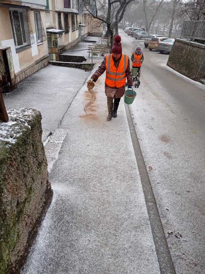 Посыпка тротуаров дворниками 18 января 2022 года