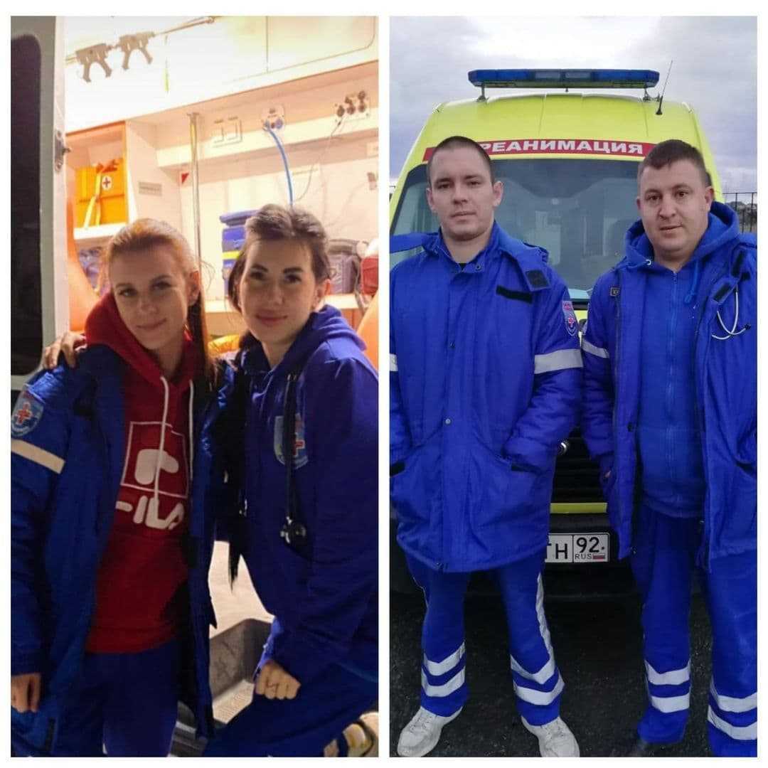 Бригада СМП Эльвира Павлович и Ксения Загичук и бригада Медицины катастроф Иван Калашников и Никита Шишкалов