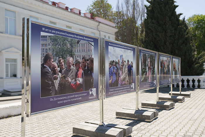 В Севастополе на набережной Корнилова, напротив здания СевГУ, открылась выставка, посвящённая человеку‑легенде. Посетители увидят фотографии Владимира Вольфовича, сделанные в разные годы, смогут почитать его яркие цитаты о России и о её роли в мире. Губернатор Севастополя Михаил Развожаев изучил выставку вместе с первым заместителем координатора севастопольского отделения ЛДПР Артёмом Александровичем Гордиенко.