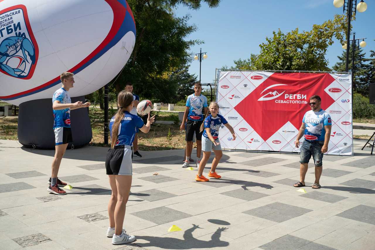 Участие в праздничных мероприятиях приняла и Севастопольская городская федерация регби. Юные регбисты и опытные тренеры знакомили всех желающих с основами регби