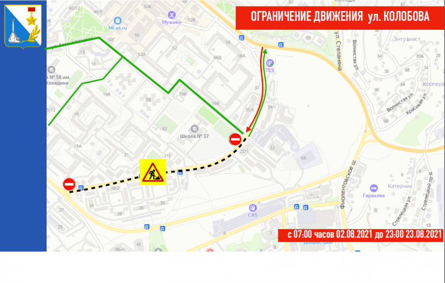 В Севастополе почти на месяц перекроют улицу Колобова