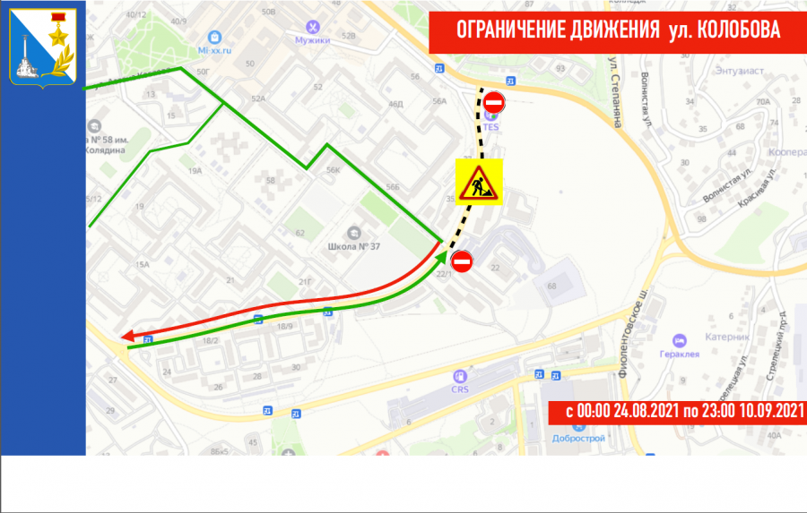 В Севастополе в связи с проведением капитального ремонта будет перекрыта улица Колобова до Столетовского с 7 часов утра 2 августа до 23 часов 23 августа, сообщает правительственный портал.