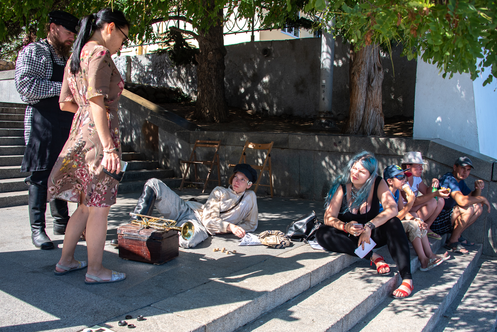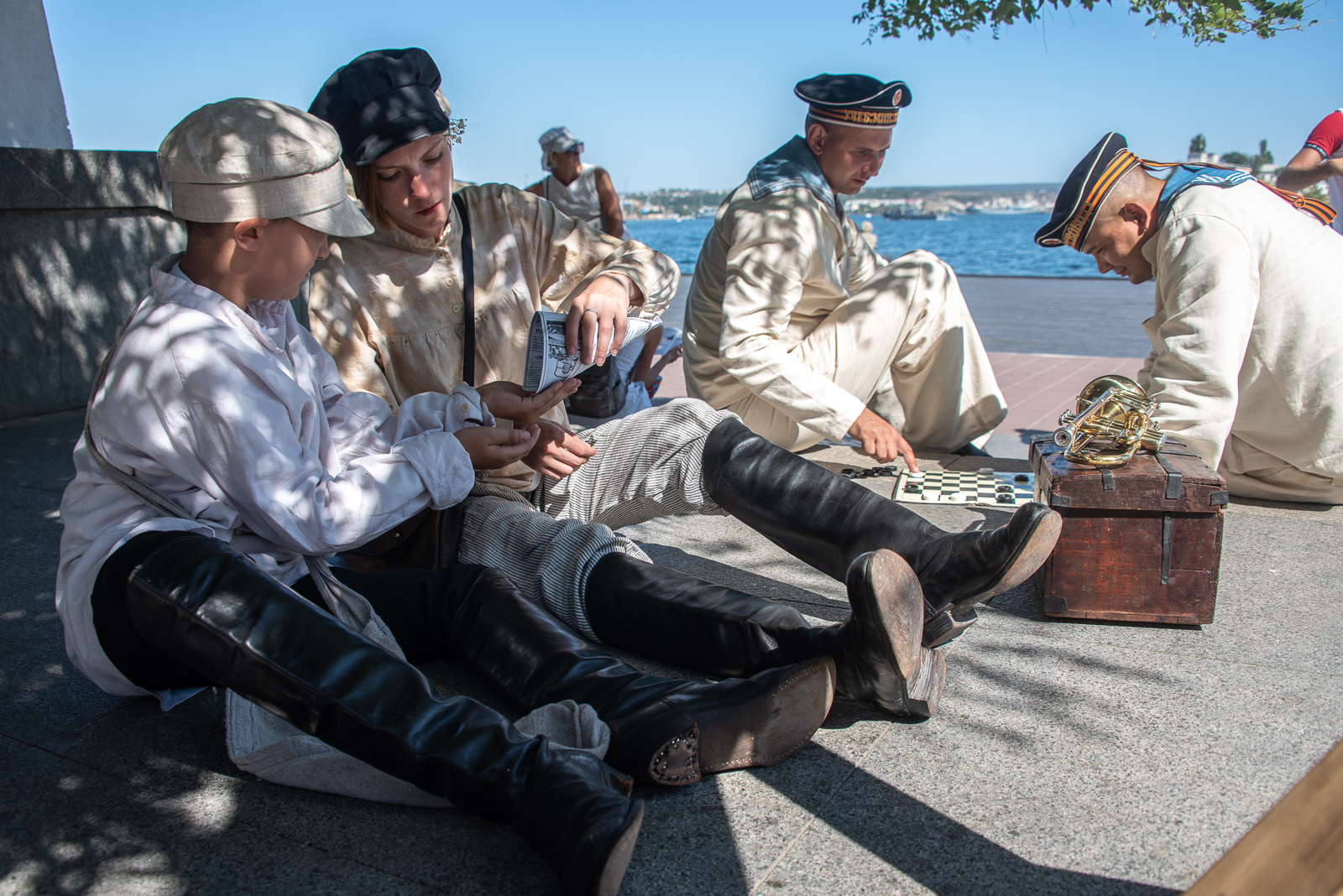 Дамы прогуливались под ручку с офицерами, матросы, играющие в шашки, местная шпана, которой за радость взбесить дворника своими выходками, продавцы баранок, чая…и всё это реконструторы в костюмах того времени воссоздали картину, прямо как у Толстого в «Севастопольских рассказах».