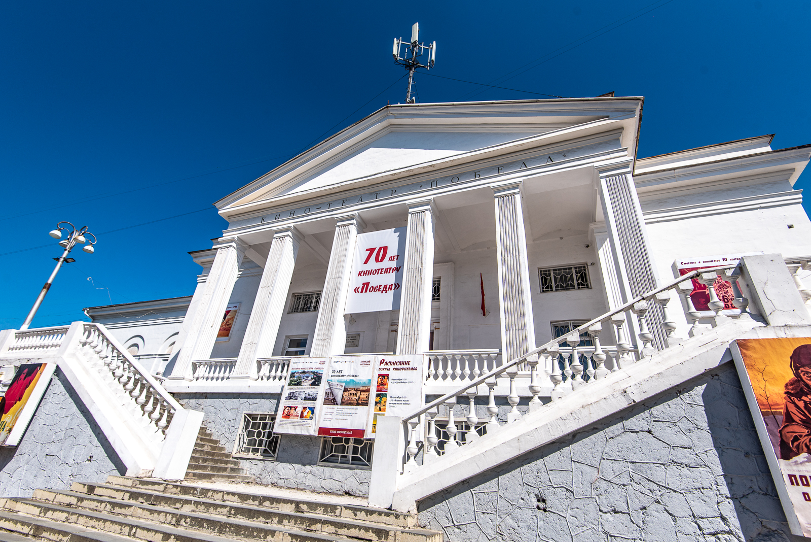 Еще на одной площадке в городе — в кинотеатре «Победа» реконструкторы восстановили атмосферу 1950-х годов. Перед зданием, украшенным старинными афишами, танцевали девушки и юноши, одетые по моде тех лет. Музыку ставили на настоящем патефоне, парам подыгрывал баянист-ветеран Первой мировой войны. Внутри кинотеатра во всю стену висит красный советский транспарант с надписью: «Кино в руках советских людей представляет огромную, неоценимую силу».