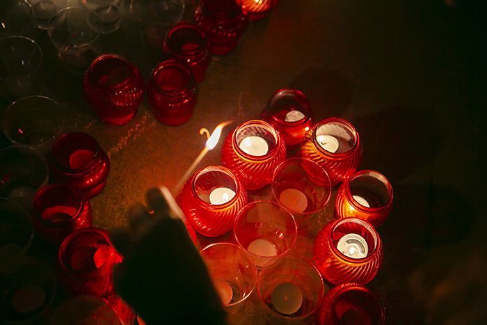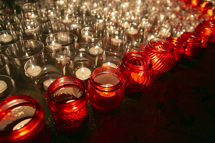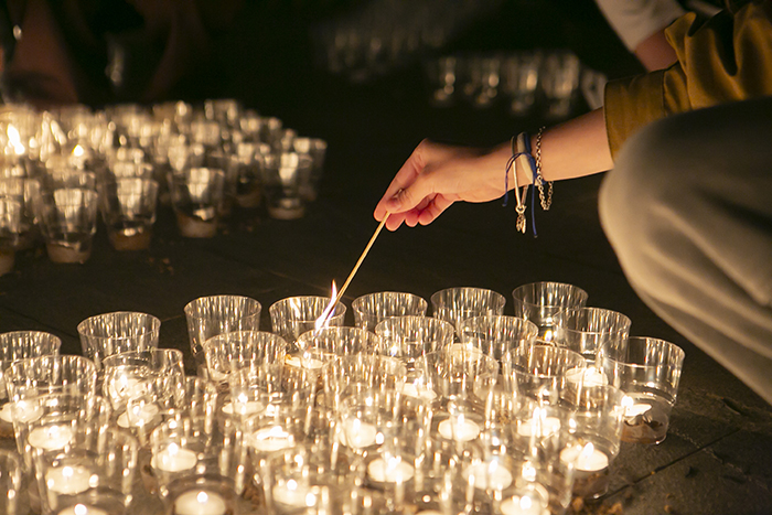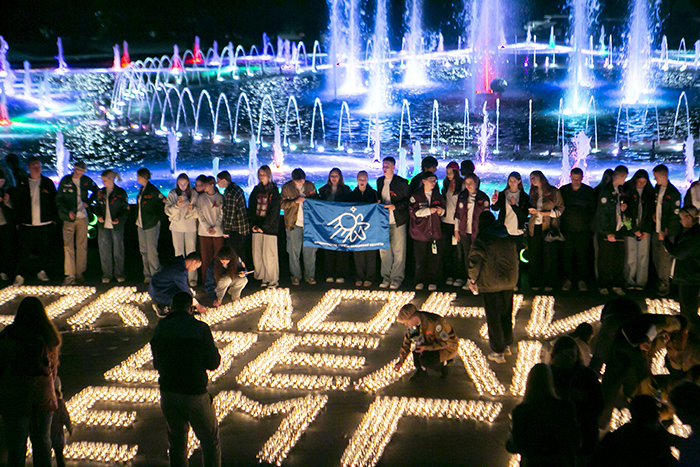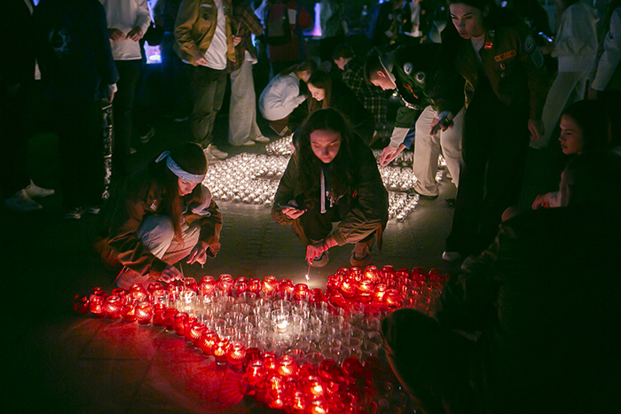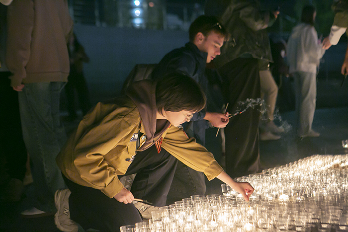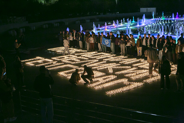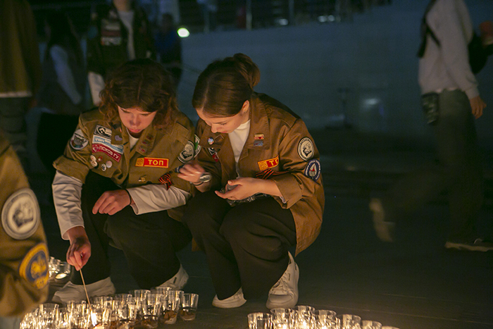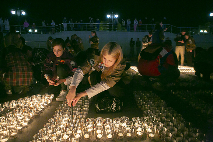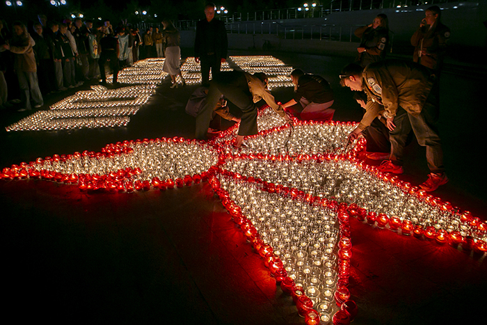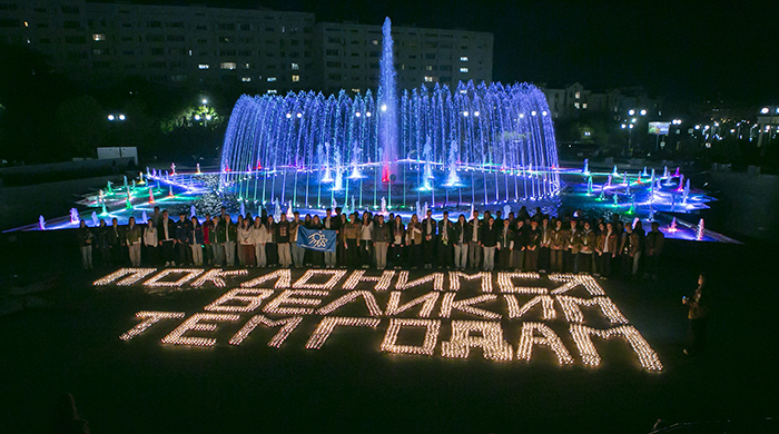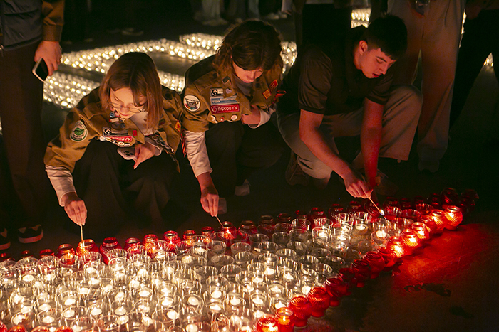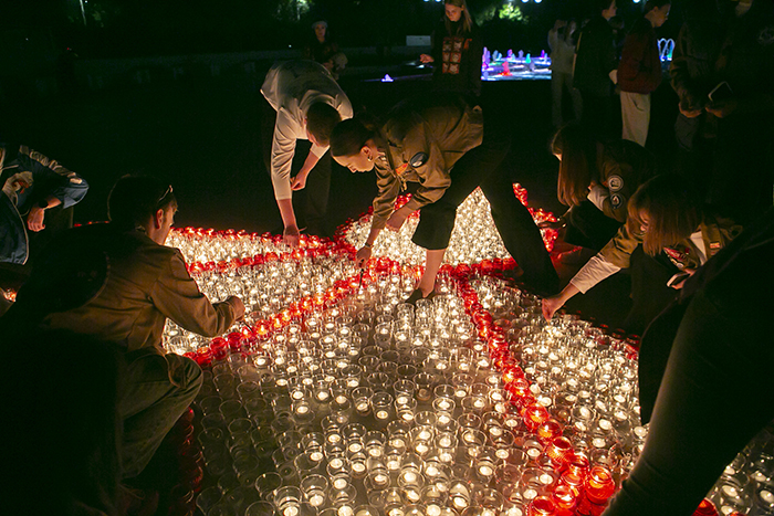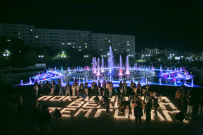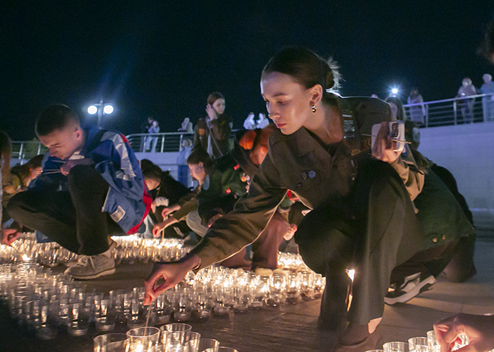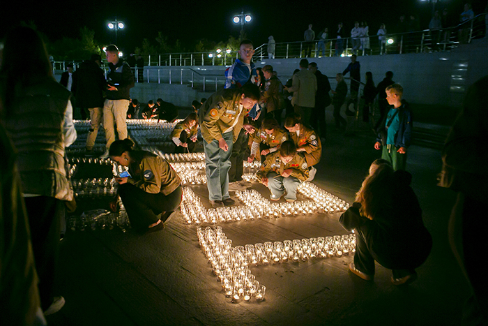 Акция «Свеча памяти» прошла вчера в Парке Победы возле главного фонтана — «Орден Победы». Ребята выложили картину размером более 20 метров.