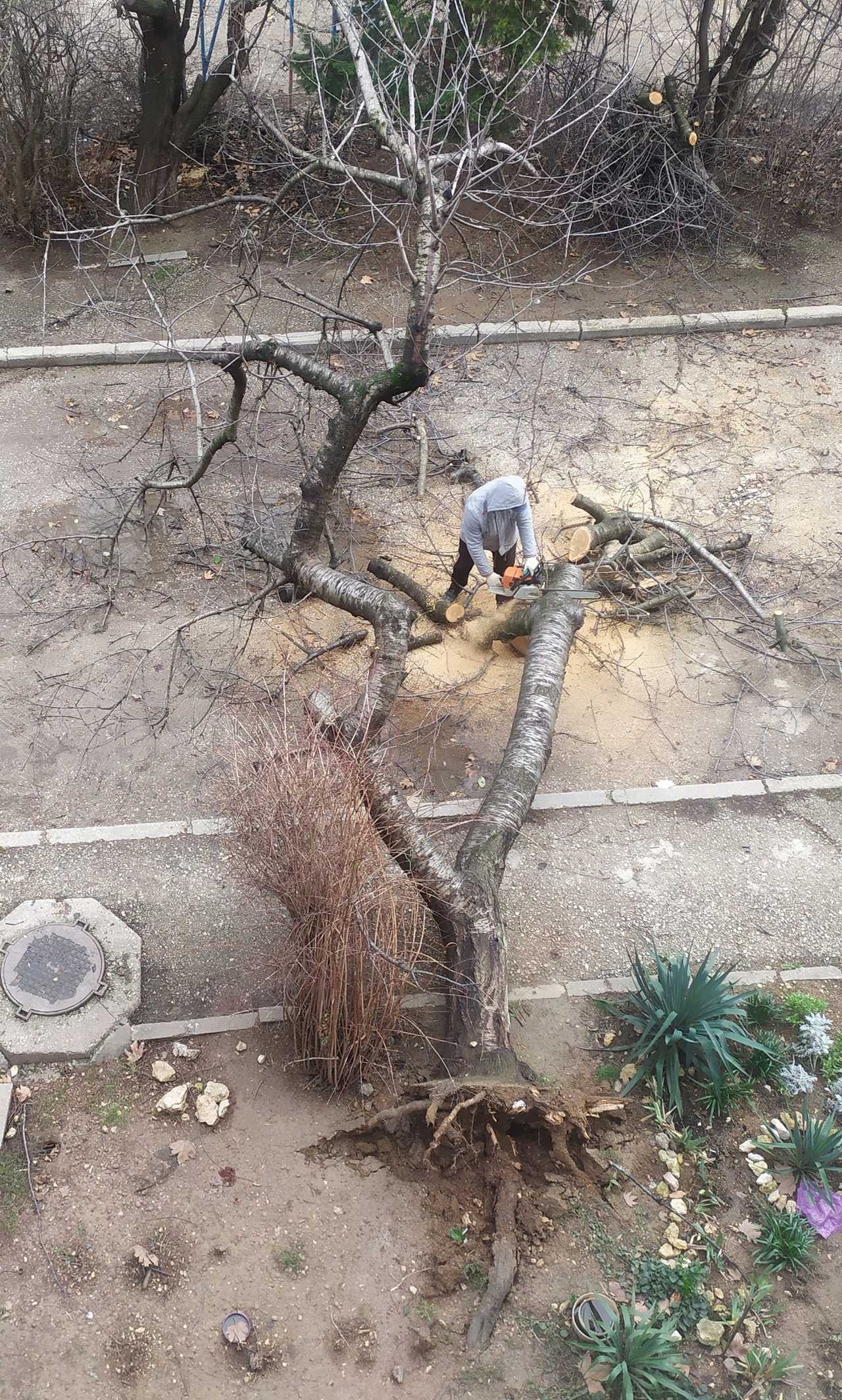 Также жители поблагодарили коммунальные службы, которые в этот же день распиливали это дерево, лежащее поперек тротуара и дороги.