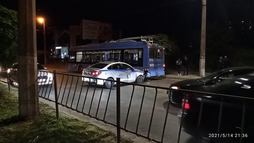 В Севастополе вечером 14 мая на улице Руднева произошло столкновение служебного автомобиля участкового уполномоченного полиции и троллейбуса. Образовалась пробка.