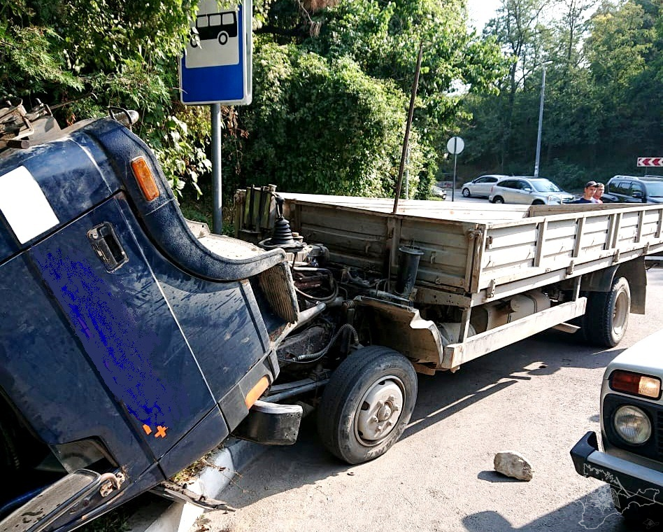 В Севастополе у грузовика откинулась кабина, когда он на скорости влетел в кювет