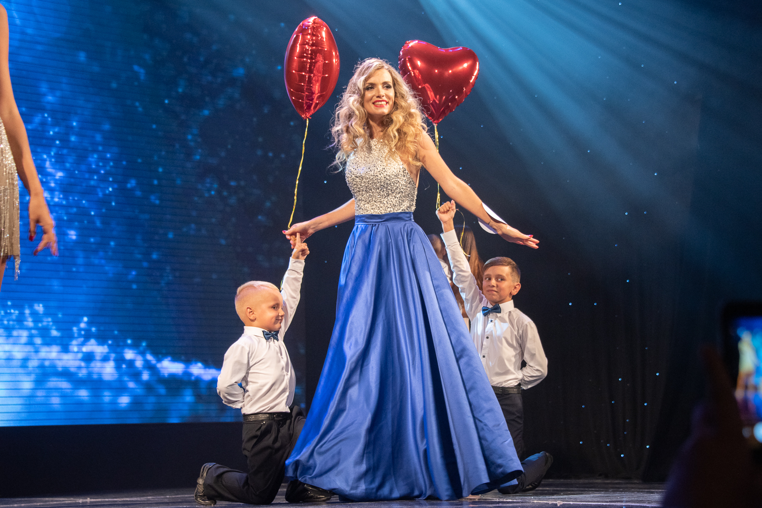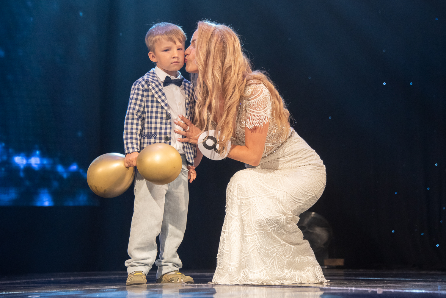 Некоторые финалистки, кстати, только недавно стали мамами и не первый раз. Как, например Анна Бойко. И вот она уже на сцене, в прекрасной форме с красавицей дочкой Маргаритой и маленьким сынишкой на руках, которому всего несколько месяцев.