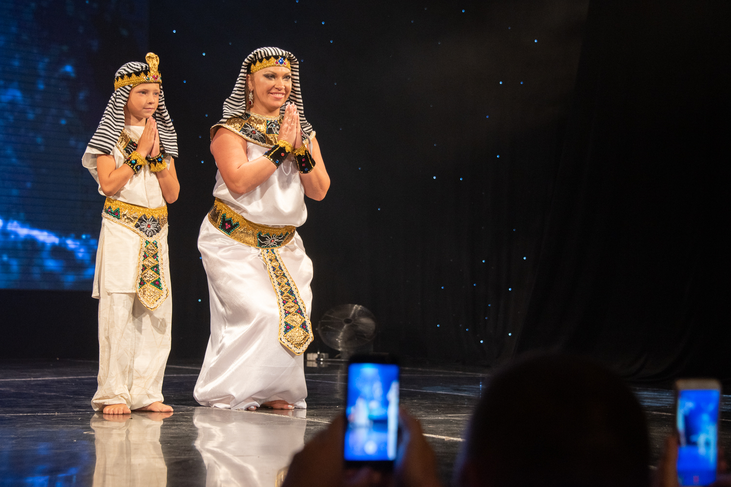 Неординарный наряд придумали Татьяна Аристова с сыном Владимиром. Они предстали перед зрителями в образе египетской царицы и фараона.