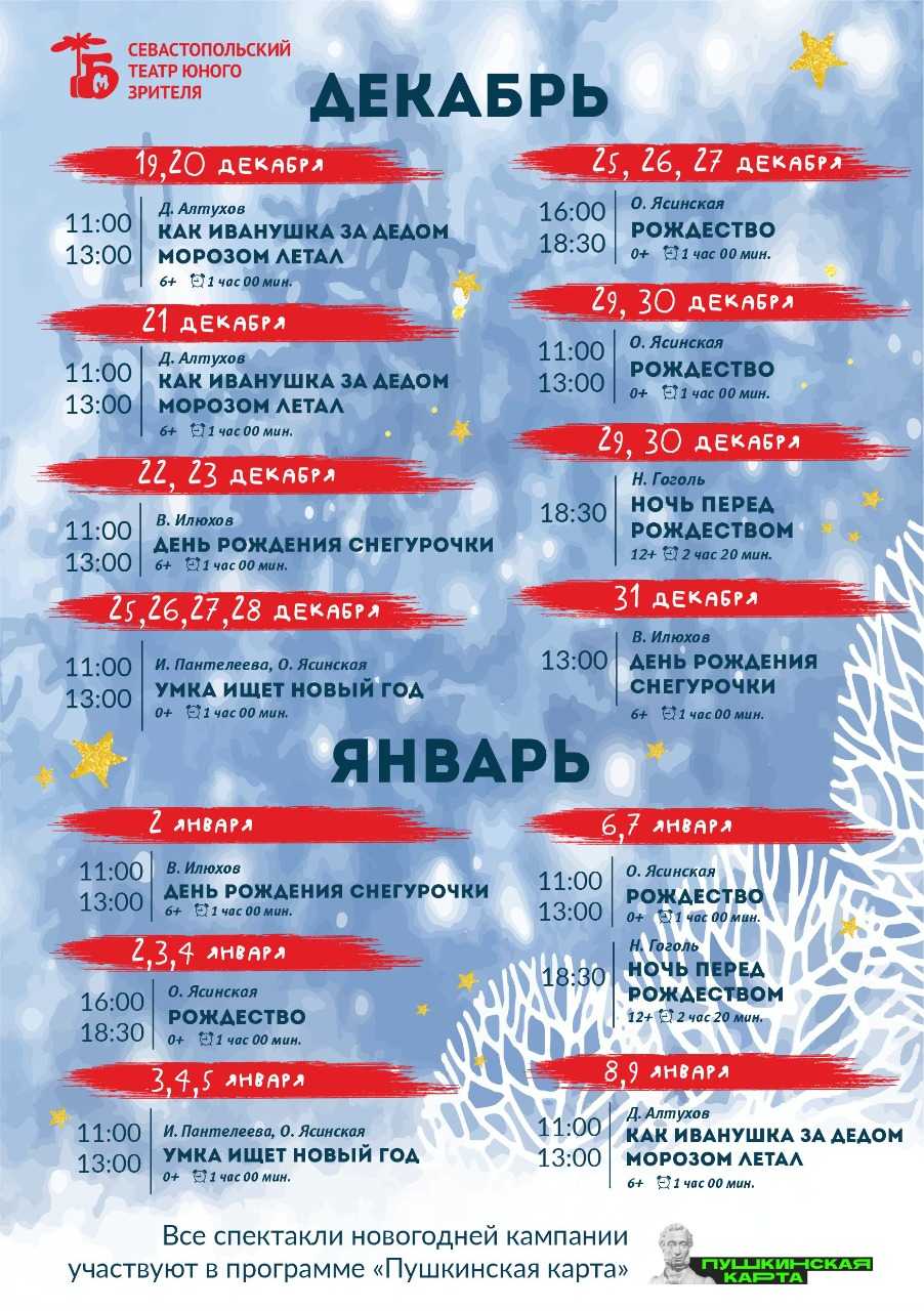 Одно понятно: каким бы ни был возраст вашего ребенка, все спектакли СевТЮЗ заставят поверить в новогоднее чудо даже скептичных родителей. Ведь когда верить в чудеса, как не в эти дни, и где еще искать волшебства, как не в театре.