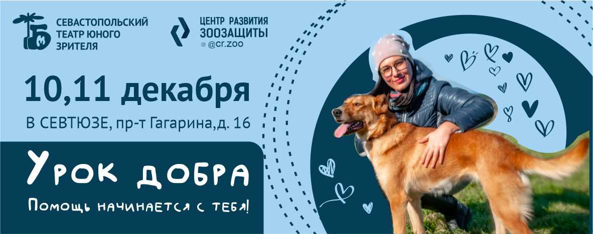 Участие в «Уроке добра» — возможность сформировать у подрастающего поколения чувства ответственности и сострадания к нашим братьям меньшим. Начало занятий 10 декабря — в 11:30, 14:30 и 18:00; 11 декабря, в 18:00.