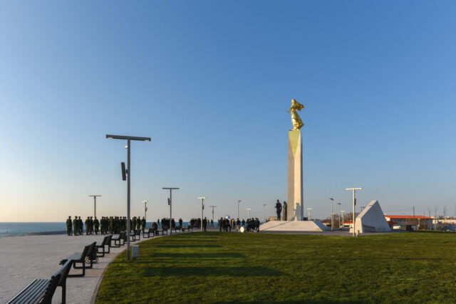 В композицию ансамбля включены две стелы, рассказывающие о последних днях гражданской войны и о сломанных судьбах миллионов людей.