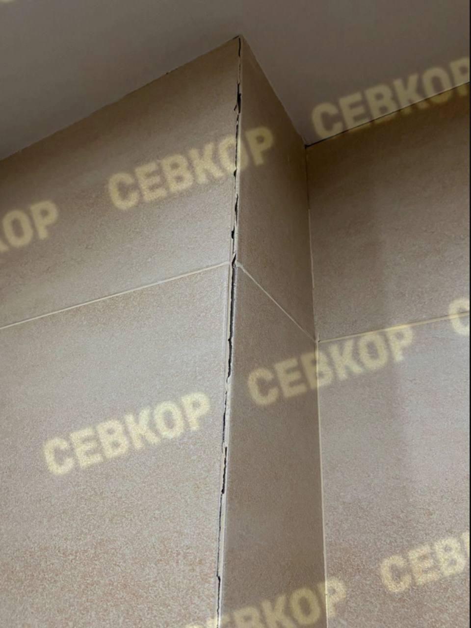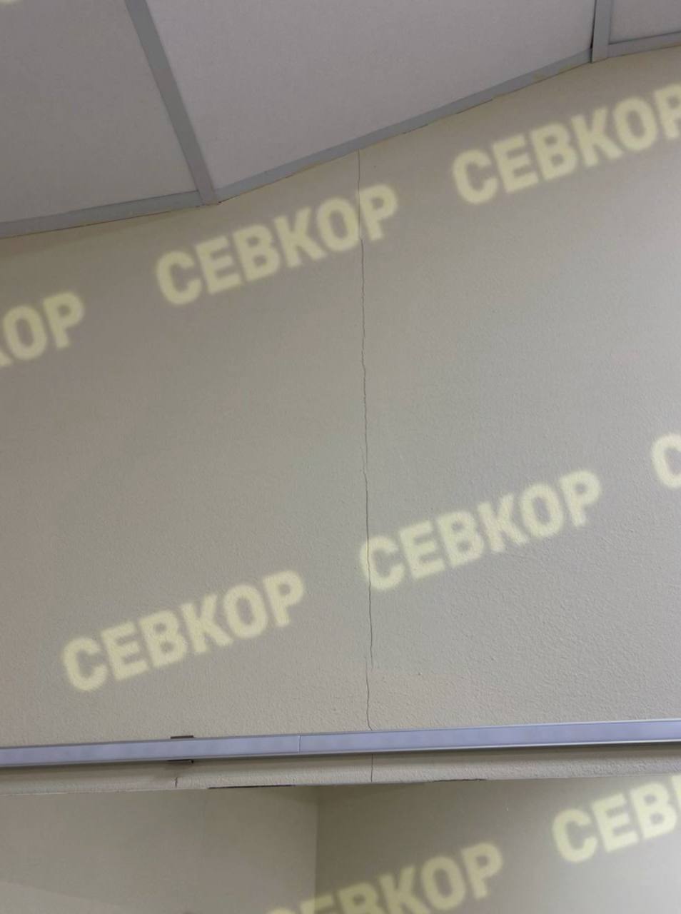 А главное, в силу вибраций, подмывания и просадки фундамента от бурения дали трещины стены и потолки входных групп, а также стены в некоторых квартирах.